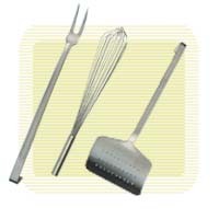 Duży asortyment przyborów kuchennych ułatwi pracę w kuchni. Większość narzędzi mozna powiesić na wieszaku lub na krawędzi okapu. Wyroby wykonane ze stali nierdzewnej.